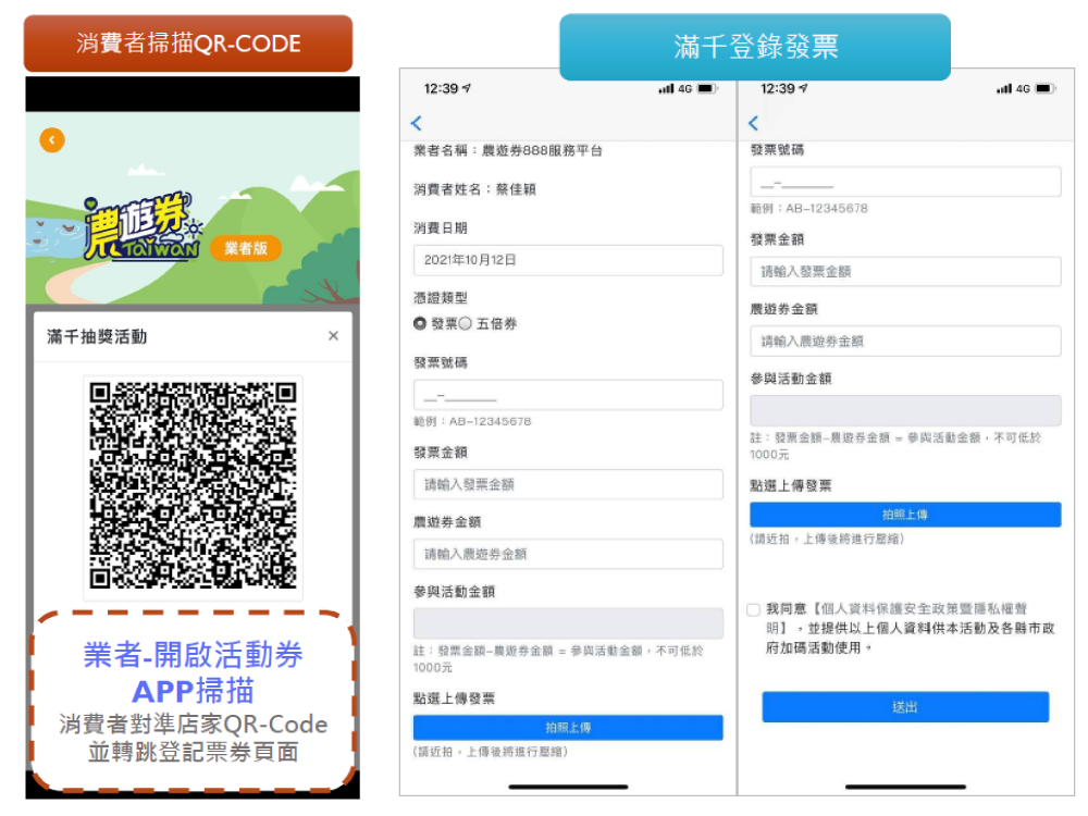 請出示您的農遊劵QRCode交由「門市人員」掃描
