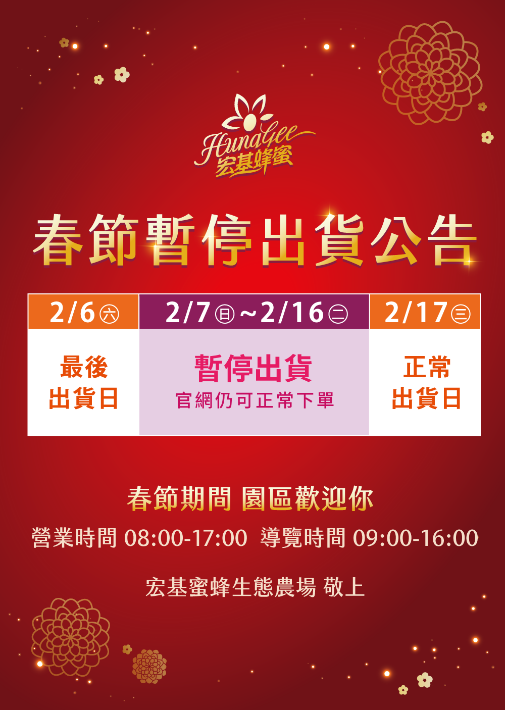 02/07(日)~02/16(三/初五)暫停「客服&宅配出貨」