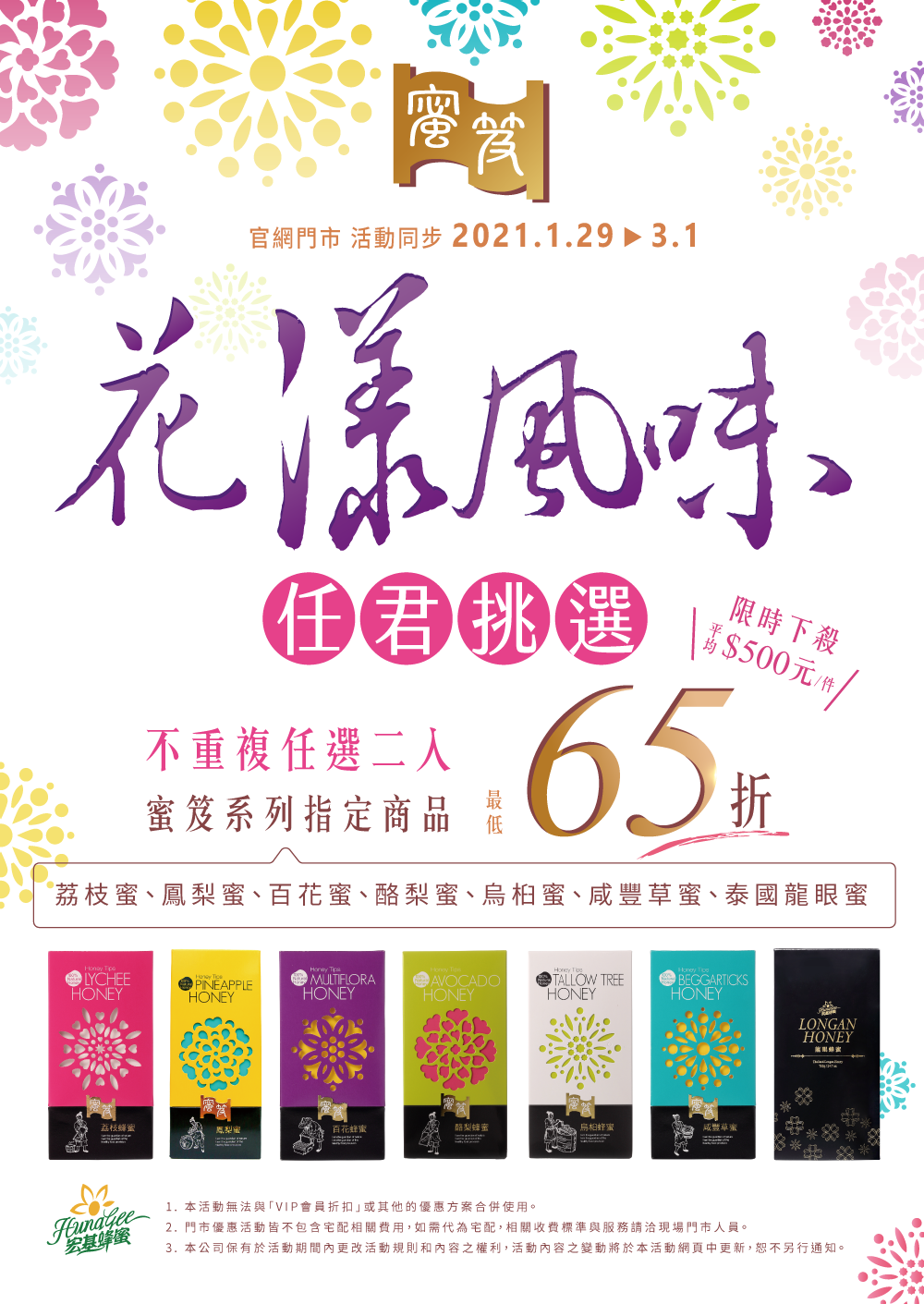 新春開運 「花漾風味 任君挑選」 限時優惠65折 !