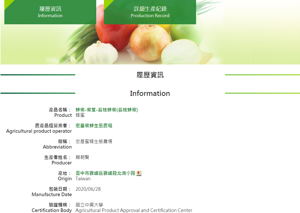 Hung Gee Bees Farm was the first honey producer to receive the TAP production and marketing record certification in 2020 for its "Meiji Longan Honey" and "Meiji Lychee Honey."