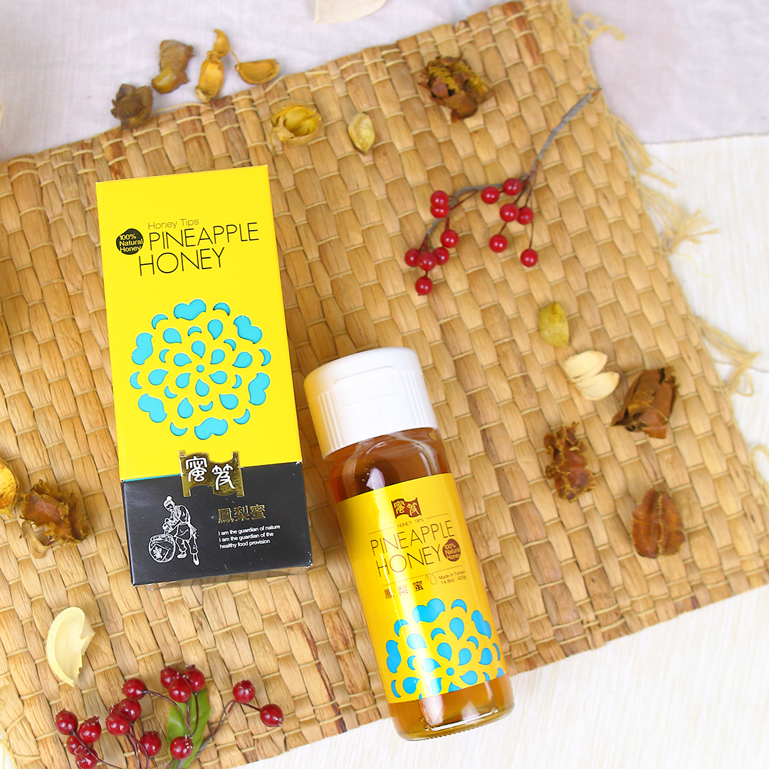 ●品名:蜜笈 鳳梨蜜《易結晶》●容量:420g/瓶●成分:蜂蜜●原產地:台灣●保存期限:二年●保存方法:常溫不宜冷藏、曝曬,請放置陰涼處存放,避免碰到水。●使用方法:可以冷、溫開水泡開,再加冰塊、果片。可和牛奶、咖啡調和或當抹醬、沾醬或調理。 ●注意事項:1.八個月以下幼兒不宜飲用。2.不與生石膏類食品、生甲殼魚類、生蠔類同食(間隔二小時)。3.蜂蜜為農產品,每批品質會隨氣候與環境而有所異。4.結晶乃晶種自然轉化,可放心使用。